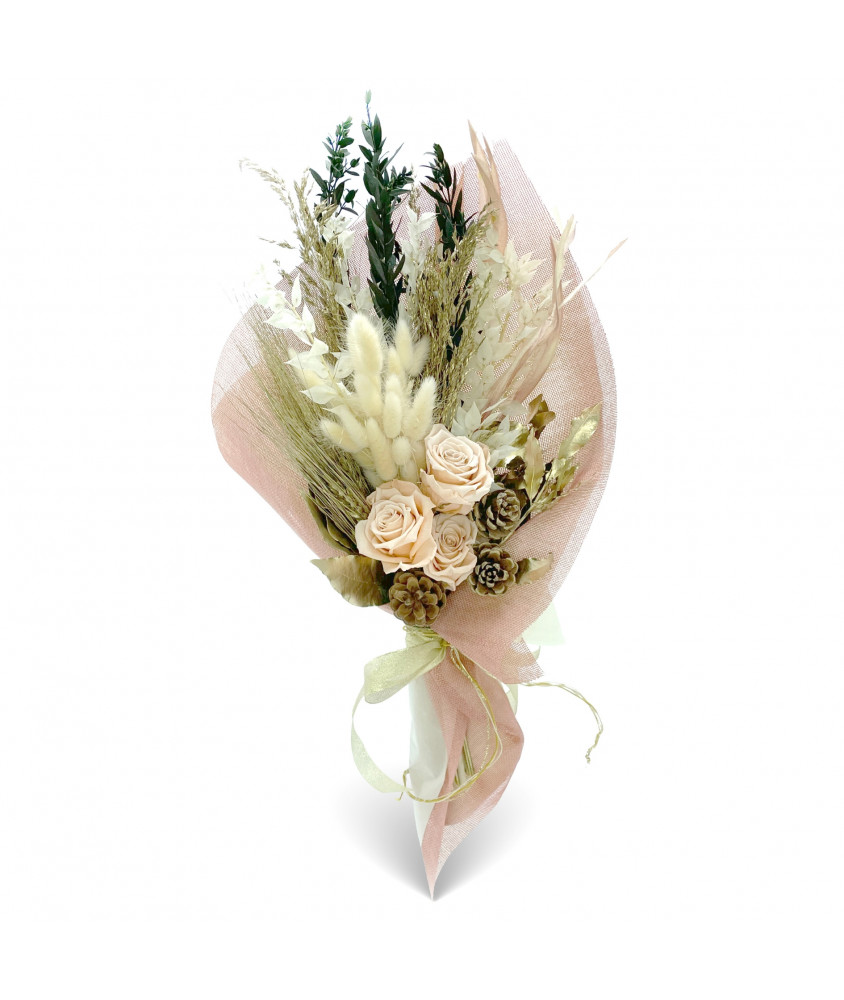 Il bouquet di fiori stabilizzati è un presente floreale che combina la classicità del presente floreale con la particolarità dei fiori eterni in una confezione assolutamente raffinata.